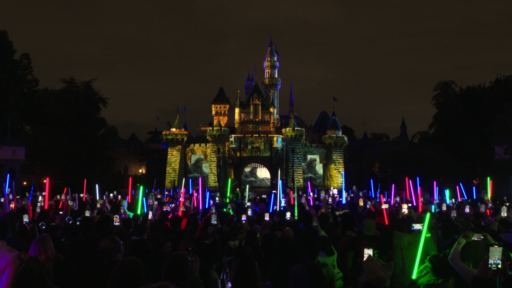 Luna strolled out right in front of Sleeping Beauty’s Castle to talk with the fans in attendance. There were Star Wars droids like R2-D2 and BB-8 there. Mickey Mouse and Minnie Mouse also got in on the Sci-Fi fun. Disneyland also played a new projection show called “Welcome to the Rebellion.” Star Wars fans are going to want to check that one out for sure!