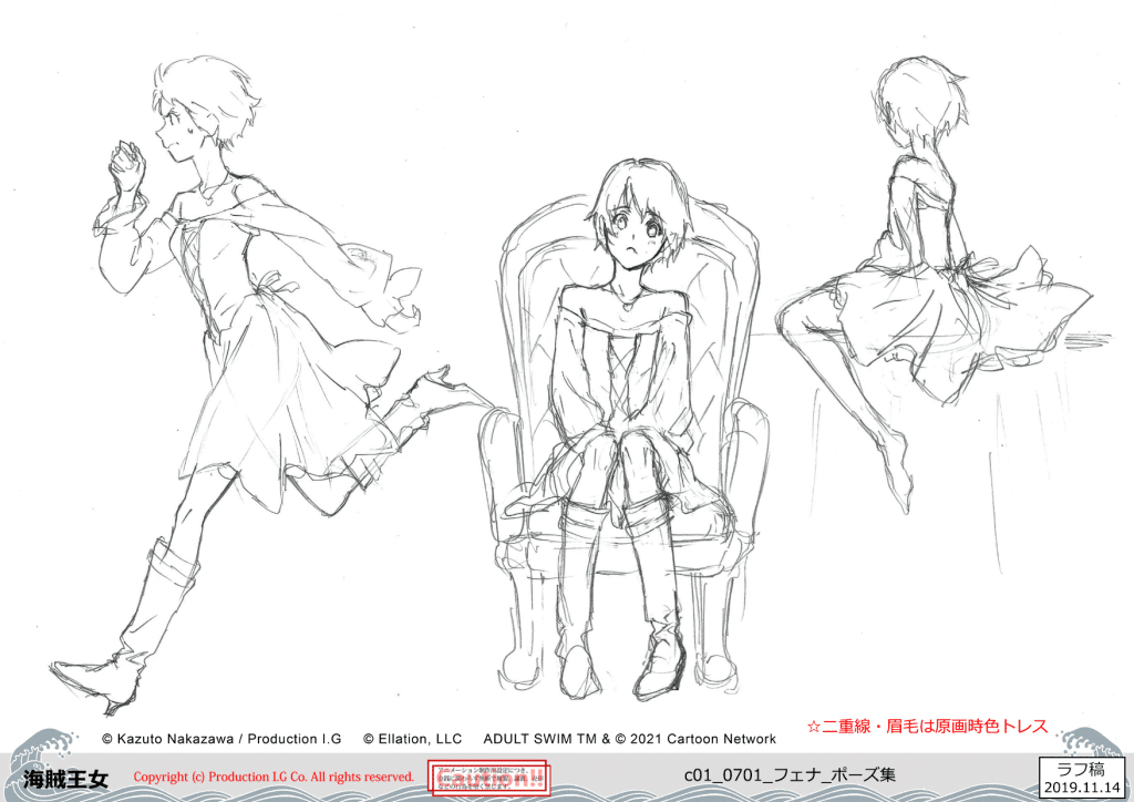 But that’s not all. During the Annecy International Film Festival, Fena: Pirate Princess got selected as a Work in Progress series, complete with a panel featuring director Kazuto Nakazawa and producer Rui Kuroki from studio Production I.G.. That panel also shared quite a bit of character and production art. Here are some examples…actually, you know what? Let me give you the full list: