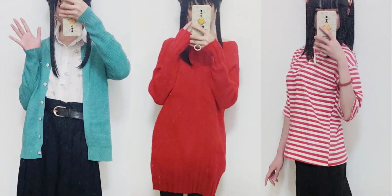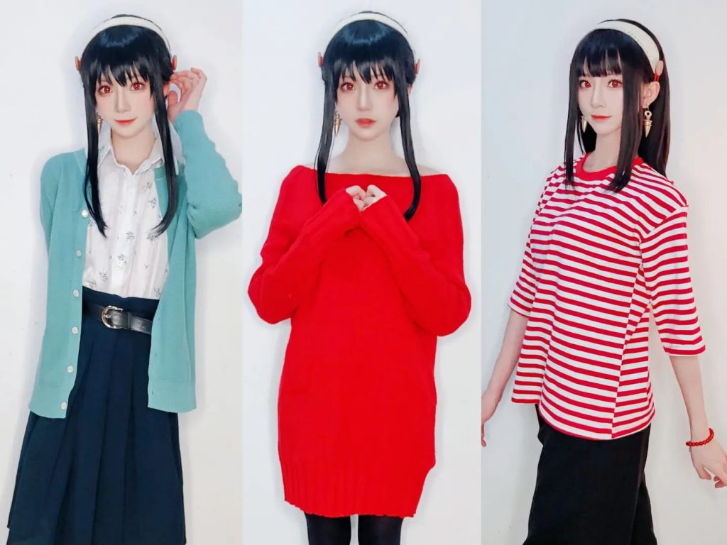 As you can see, the costumes @Kitaro_cos is wearing are nearly identical to the outfits Yor is wearing in Spy x Family. In fact, the middle costume with the red sweater appears to be identical. The costume on the right is almost an exact match. The only difference is in the red color of the stripes, but you can excuse that due to the low resolution of the manga picture.
