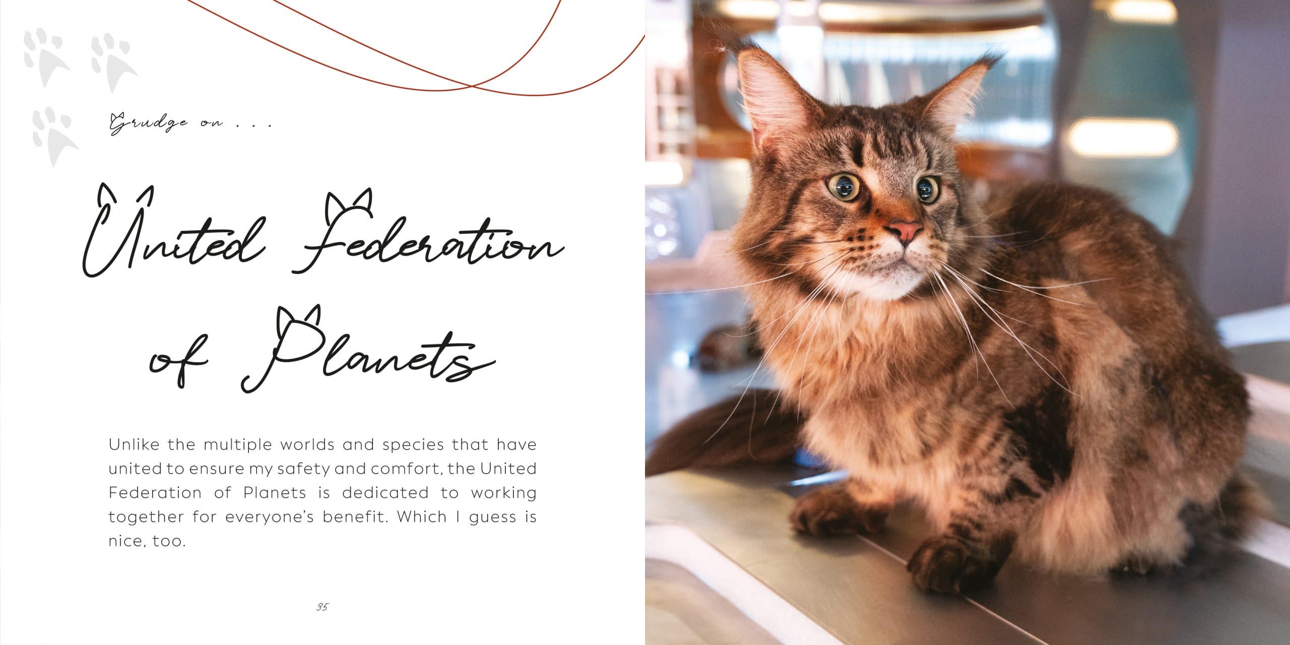 This 96-page book is an excellent addition to anyone’s coffee table, better yet inside a cat cafe! Throughout the book, you’ll find Grudge’s thoughts on the crew around the ship, The Federation, Starfleet, etc.