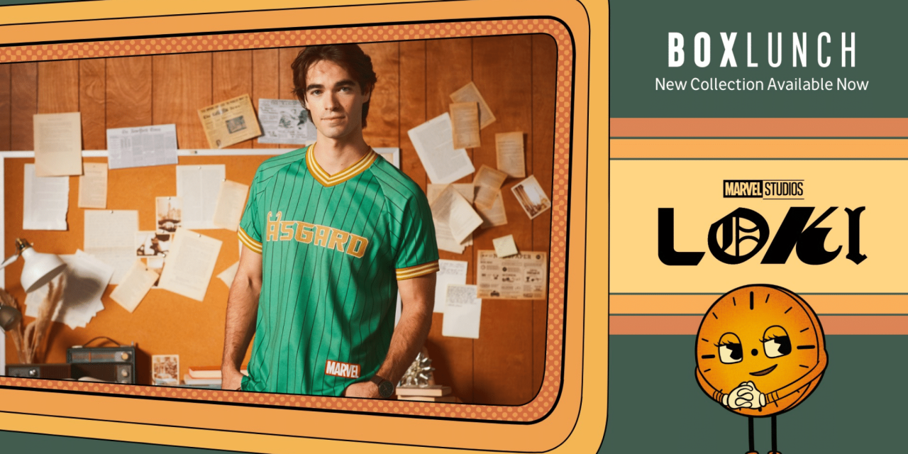 BoxLunch is proud to announce a collaboration effort with Marvel Studios over Loki season 2. For what, you might ask? Well, for merchandise, of course. Mostly in the form of a whole new collection of apparel (i.e. clothing). This includes a “BoxLunch Exclusive Loki Striped Baseball Jersey in Loki’s signature green and gold colors”.