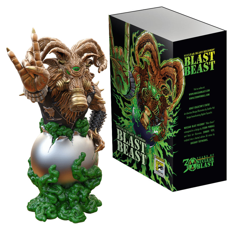 The Blast Beast comes in four colors, but the one you really want is the full color variant. This 9 inch behemoth celebrates the new mascot for Nuclear Blast Records. It was designed by Zombie Yeti and Stern Pinball. The full color variant is limited to 150 pieces!