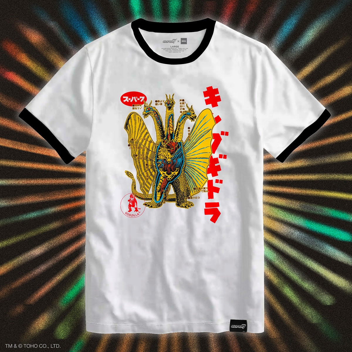 Chances are you didn’t get to dissect a Kaiju in science class when you were growing up. With the space and budget constraints schools have to deal with, that’s no surprise! Now you can have the next best thing with the new Toho Anatomical Ringer Tees and Crewnecks featuring Godzilla, Mechagodzilla, and King Ghidorah!