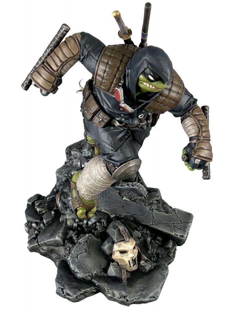 A Diamond Select Toys release! Who is the Last Ronin? The last surviving member of the Teenage Mutant Ninja Turtles is shrouded in mystery, but now hes the first-ever TMNT Gallery Diorama! Measuring approximately 10 inches tall, this dynamic sculpture depicts the Ronin running across a rocky landscape, past Casey Jones’ mask. Crafted of high-quality PVC, this diorama comes packaged in a full-color window box. Designed and sculpted by Kinetic Underground!