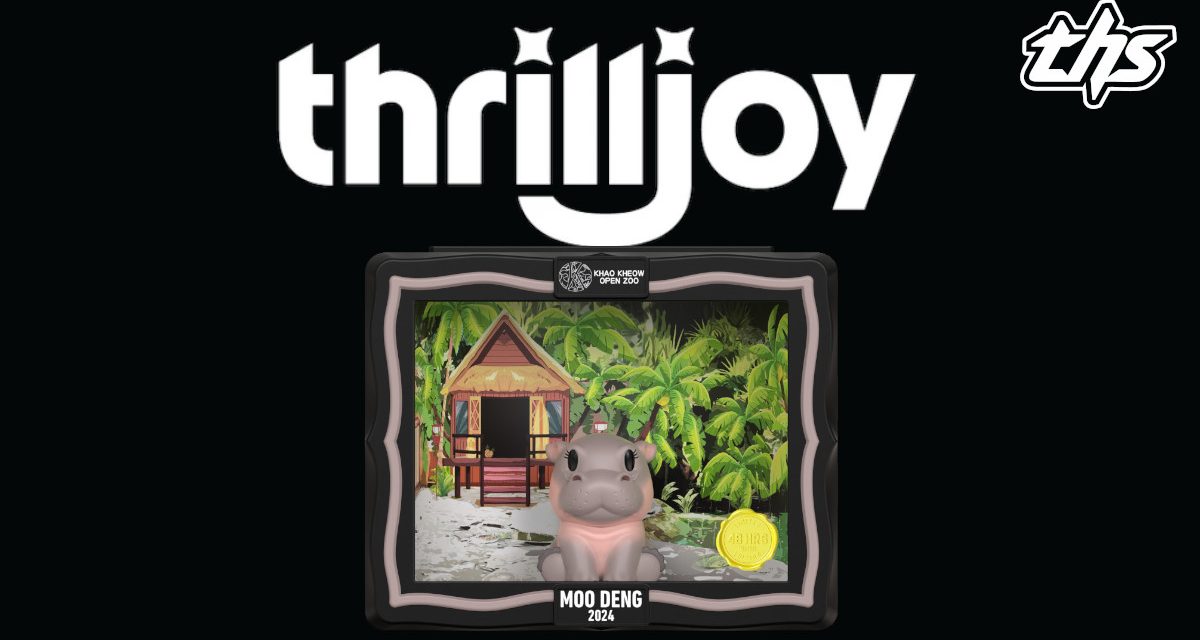 Thrilljoy secured an agreement with the Khao Kheow Open Zoo in Chon Buri, Thailand, to create a limited-edition collectible based on the pop cultural sensation/pygmy hippo, Moo Deng. Every purchase helps maintain the future of Moo Deng’s habitat at the Khao Kheow Open Zoo, supporting wildlife conservation.