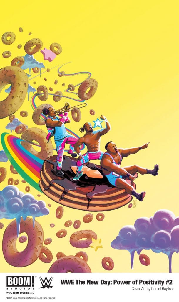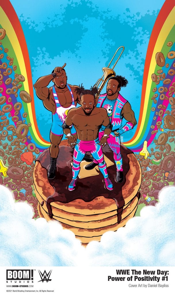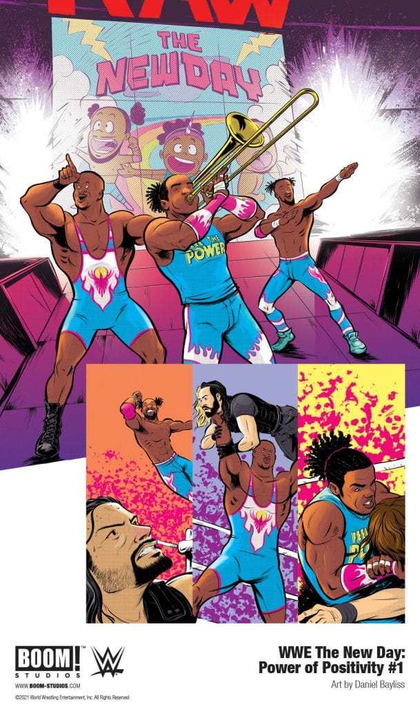 You better not be sour! Clap for your new BOOM! Studios release, and feel the power! That’s right, the New Day are joining up for a new special release two issue comic. WWE The New Day: Power Of Positivity is coming this July 2021. Featuring WWE Superstars Kofi Kingston, Big E, and Xavier Woods, and written by Evan Narcisse and Austin Walker, the comic tells the unseen story of the most successful group in WWE history.