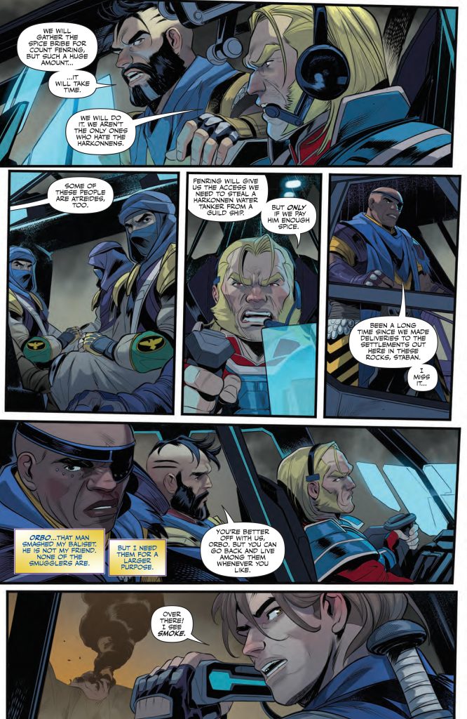 Dune: The Waters of Kanly #2 finally shows us how Gurney Halleck plans to get revenge on the Harkonnens for the murder of House Atreides. To start with: he plans to steal water from them. A lot of water.