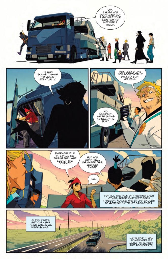 Our Secret Keepers just had their butts handed to them. Too many unknowns were known by the enemy, which means a leak needs to be fixed. Ching thinks she knows a place where they can truly hide, be safe and regroup. While Ching sees to the transportation needs, Eva decides to interrogate one of the attackers. Sadly she quickly realizes he truly know nothing. He’s a hired thug no more.