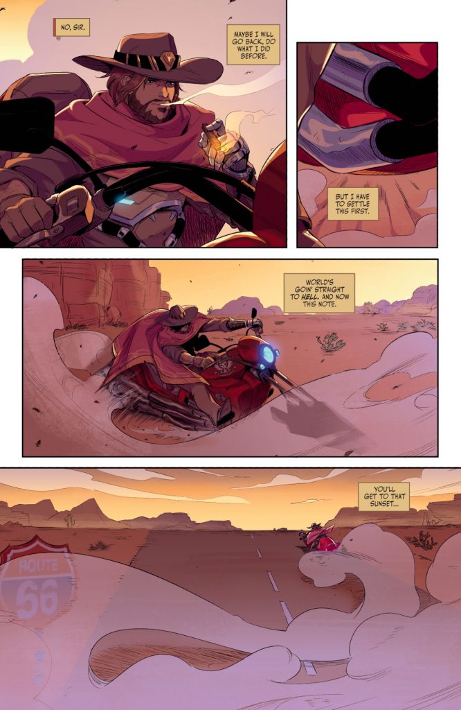 Overwatch: New Blood #1 feels like a sci-fi western story at times. What else would you expect from a cowboy named Cassidy with a cyborg arm and a do-gooder attitude to life?