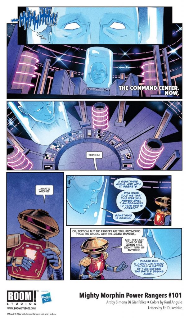 Seems even cosmic beings need a nap. Seemingly they have nightmares too! Zordon tries to stay ever vigilant, asking Alpha to keep scanning.