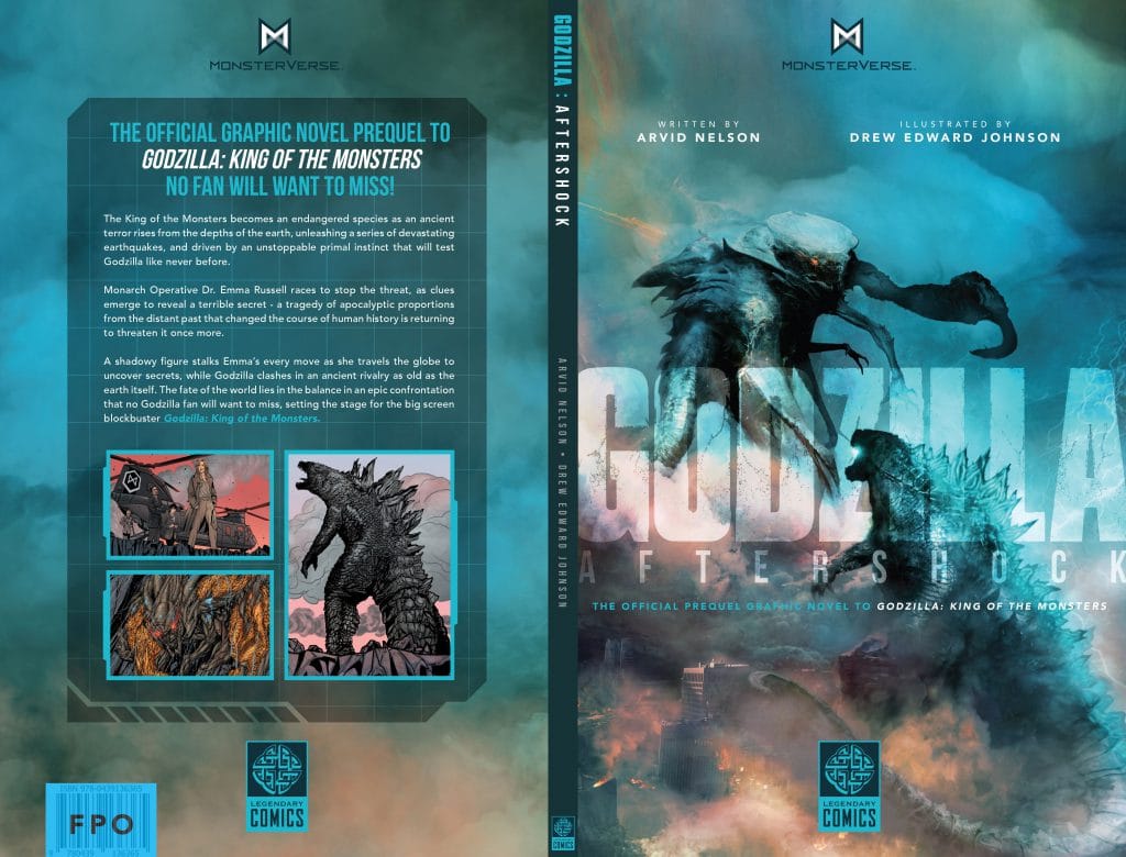 In Godzilla: Aftershock, the King of the Monsters becomes an endangered species as an ancient terror rises from the depths of the Earth that will test Godzilla like never before. A shadowy figure stalks Dr. Emma Russell as she travels the globe with a team of Monarch operatives to unearth clues of an ancient terror returning to threaten humanity, while Godzilla clashes in a rivalry as old as the Earth itself. Written by Arvid Nelson with art by Drew Johnson and coloring by Allen Passalaqua.
