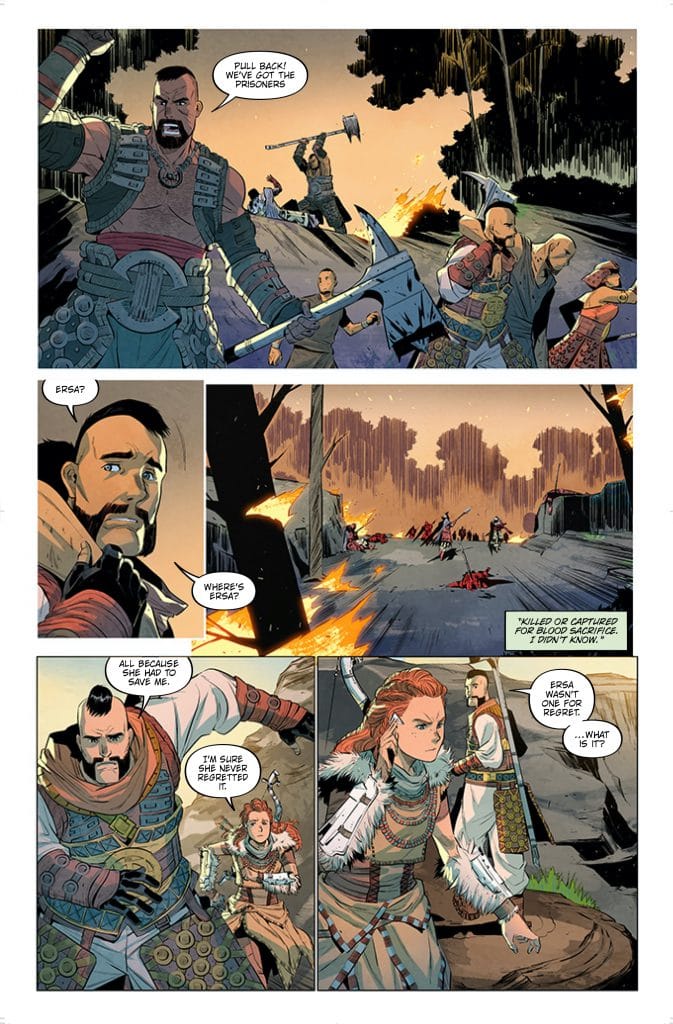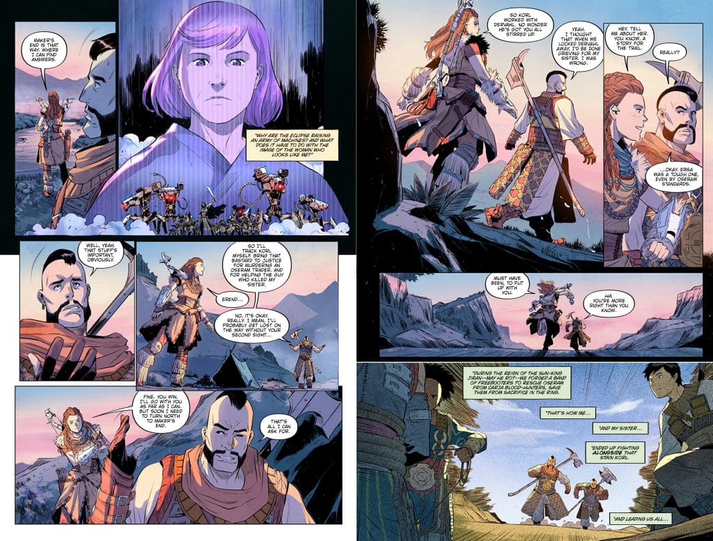 Titan Comics is proud to announce Horizon Zero Dawn: Liberation #1: a new comic book starring Aloy and Erend. To hype it up, they’ve even released cover art and preview pages. This latest comic book foray into the world of Horizon Zero Dawn will go on sale on July 14, 2021. You can preorder it physically or digitally now.