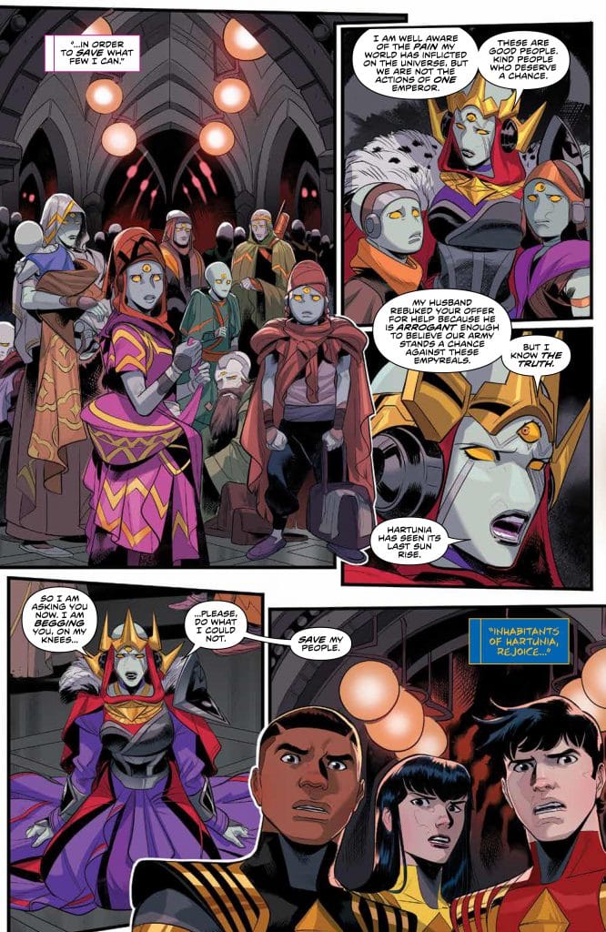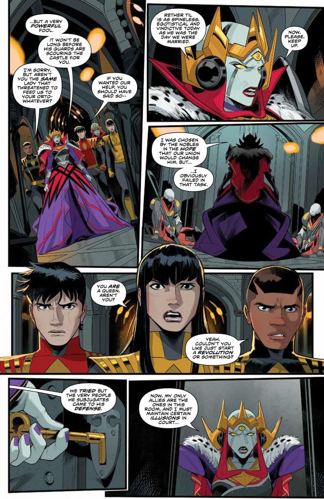 Following up on our last issue the Omega Rangers are set free by the Queen of Hartunia as she is trying to save her people behind her misogynistic husband’s back.