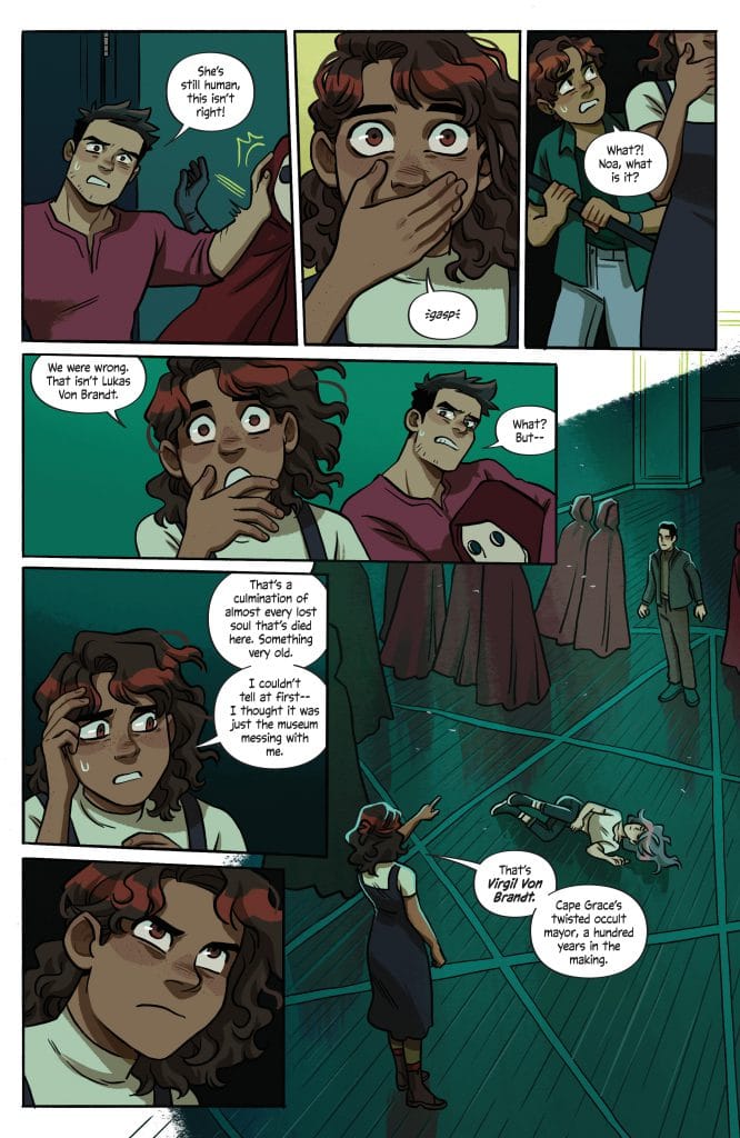 Specter Inspectors #5 draws to a close with an intense final chapter! The Inspookters finally confront the real evil hiding in Cape Grace and exorcise their demons (both literal and metaphorical).