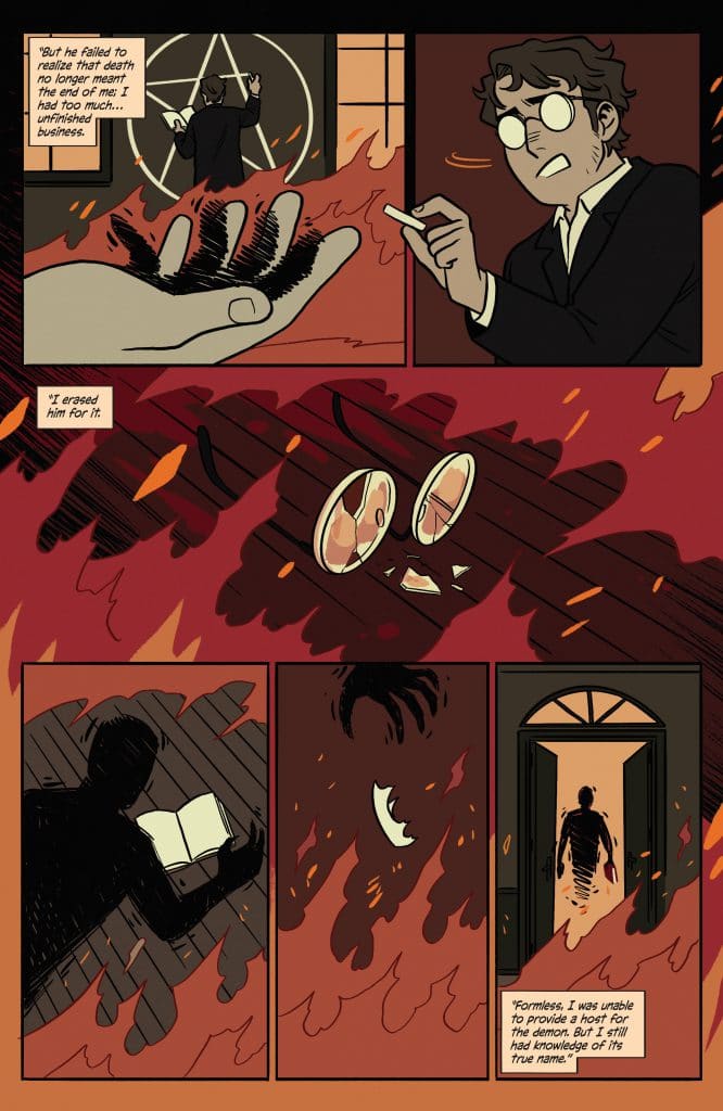 I also want to take the time to praise the artist, Bowen McCurdy. I’ve enjoyed the visuals of Specter Inspectors from the beginning, but this final issue really takes things to the next level. The art for the creature design in Specter Inspectors #5 is INCREDIBLE. Seriously, the hellfire, skulls, and demon Von Brandt were majorly creepy. And later, the demon evolves into a new form that’s simply stunning. It reminded me of something out of a Studio Ghibli film like Princess Mononoke or Spirited Away. I expected the drama and the scares, but the visuals in this final chapter really solidified this series as a favorite of mine.