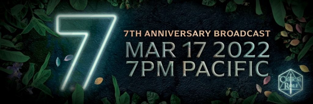 Critical Role’s 7th Anniversary is coming up soon on March 17th. And the cast is celebrating in the biggest way possible. The cast celebrated Campaign 3 with the premiere airing in Cinemark Theaters. And now, the 7th Anniversary episode will be screening in Cinemark Theaters both in the US and also in Brazil. Critical Role … Continue reading Critical Role Announces Huge 7th Anniversary Plans