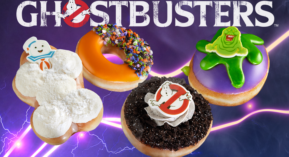 You might have thought that pumpkin spice took over the Fall season at places like Krispy Kreme donuts, but no, it’s Ghostbusting season. The donut chain has added a group of Ghostbusters-inspired donuts for the Halloween season. Krispy Kreme x Ghostbusters arrives in shop, drive-thru, and online for pickup and delivery 10/7/24 through 10/31/24 at participating US stores. The collection features four new donuts that are ghastly.