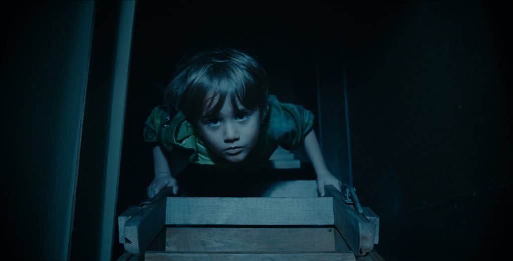 And of course, this is a horror movie. So when Fredrik leaves, the activity really starts to pick up too. The film does a great job of building a sense of supernatural unease. Knocking echoes from the empty side of the duplex. Footsteps travel down the hall, but no one’s there. The boarded-up entrance to the shared attic gets opened (you just know someone’s gonna regret that!). And Lucas starts talking to a little boy who isn’t there—as far as Shirin can see.