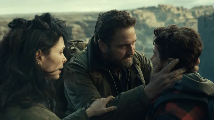There is an extremely intense sequence nestled in the middle of his latest film, “Greenland 2: Migration”, that highlights this mindset. The Garrity family (Gerard Butler, Morena Baccarin, and Roman Griffin Davis) is back, fleeing one post-apocalyptic catastrophe after another. They are faced with a death-defying high-wire act over a chasm on nothing but a flimsy old ladder. To be completely fair, there are aspects of this sequence, as well as many others, that aren’t completely visually convincing. Yet something about this section is absolutely edge-of-your-seat stressful, even when the audience can tell it’s not completely real.