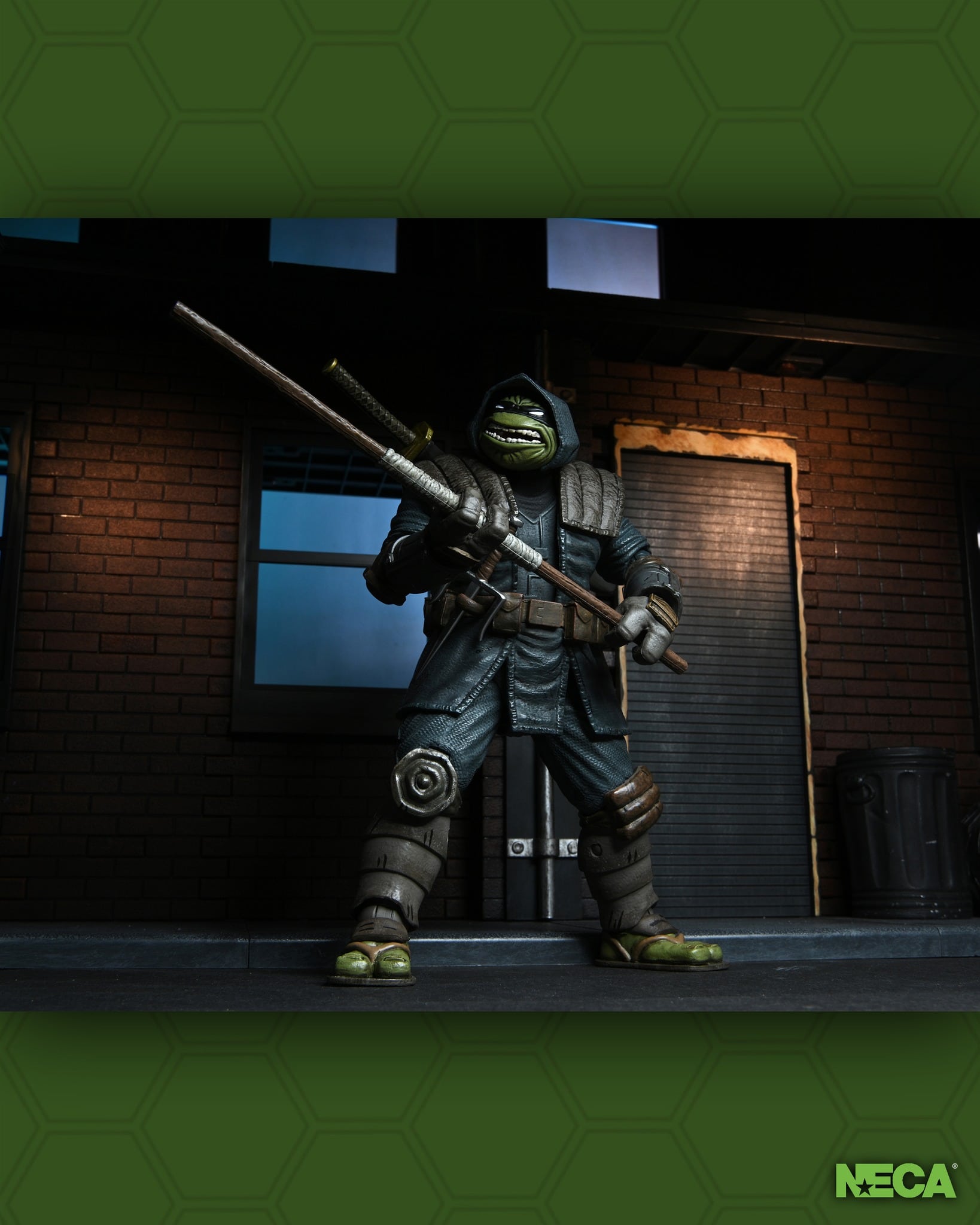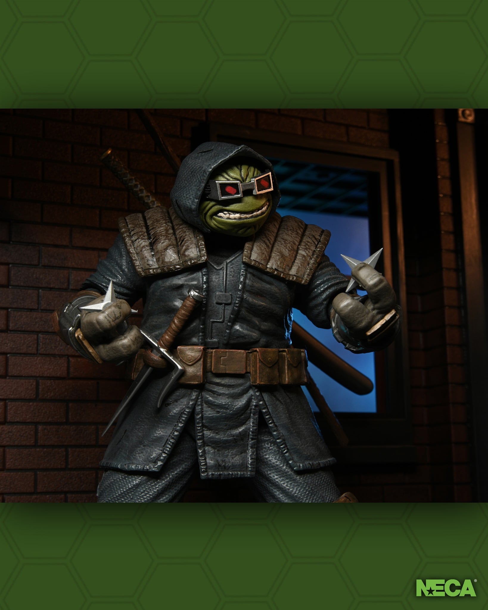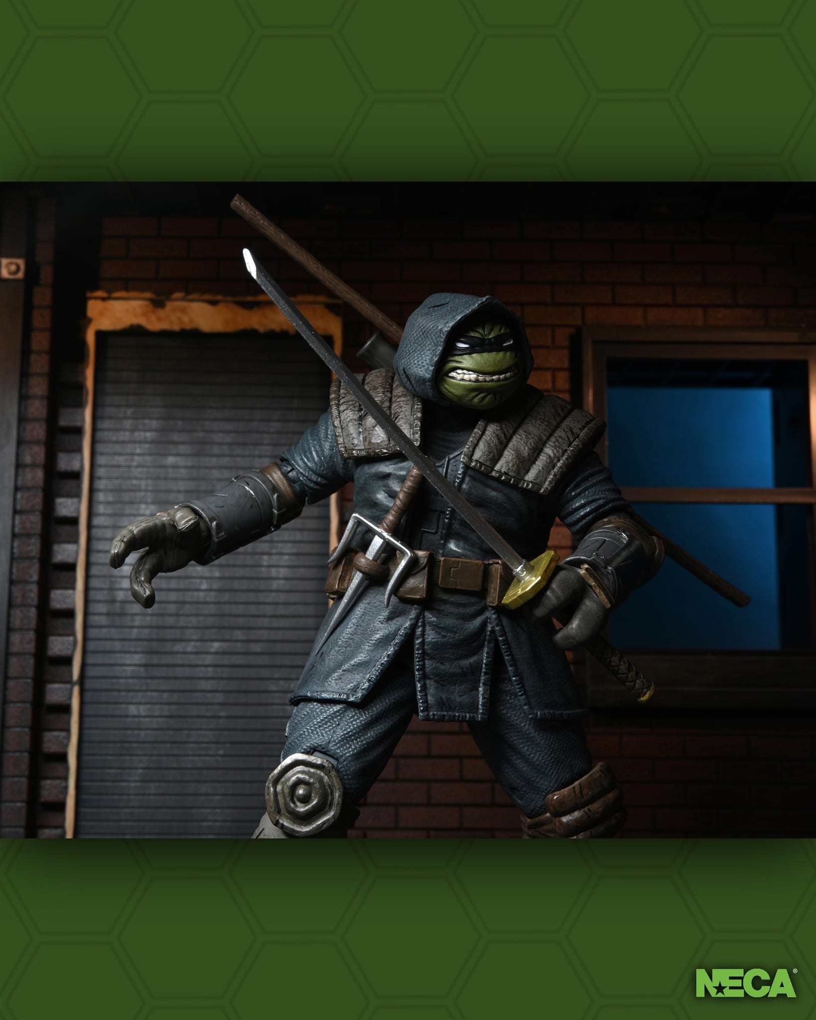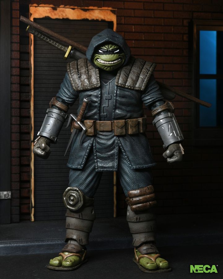 From the 2020 Teenage Mutant Ninja Turtles comic book series, The Last Ronin! In a future NYC far different than the one we know today, a lone surviving Turtle goes on a seemingly hopeless mission to obtain justice for his fallen family and friends. This armored version of The Last Ronin action figure is authentic to the comic book depiction and stands in 7” scale. Includes goggles, grappling hook, tonfa, smoke bomb, sai, katana, bo staff, nunchucks, and interchangeable head and hands. Comes in collector-friendly window box packaging with opening flap featuring a custom illustration.