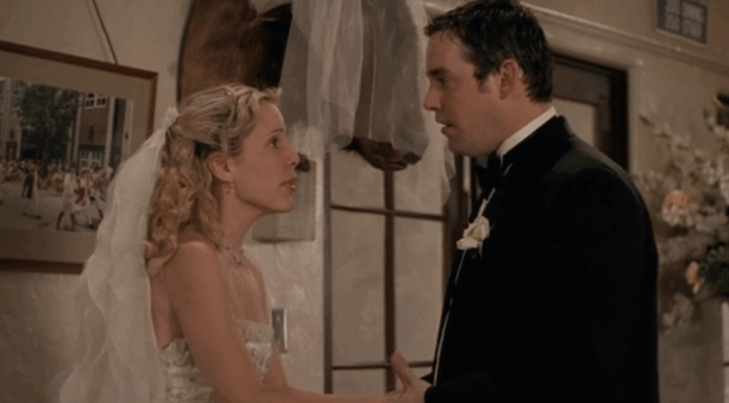 Xander had a couple of big romances on Buffy, the first with Cordelia Chase (Charisma Carpenter). Cordelia was the most popular girl in school, and initially tried to resist her feelings for the much nerdier Xander. On Valentine’s Day, Xander gifts Cordelia a necklace, but she breaks up with him after feeling pressured by her friends. Xander then enlists the witchy Amy (Elizabeth Anne Allen) to help him with a love spell. It backfires and hilarity ensues.