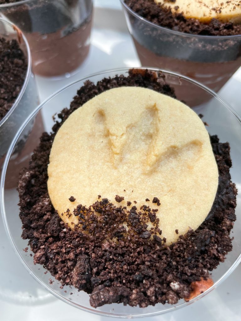 In honor of Alan Grant and Ellie Sattler, TRT serves a dessert is a paleontologist’s dream: Dino Dig Cups! Just look at that adorable T-Rex foot-stamped sugar cookie!