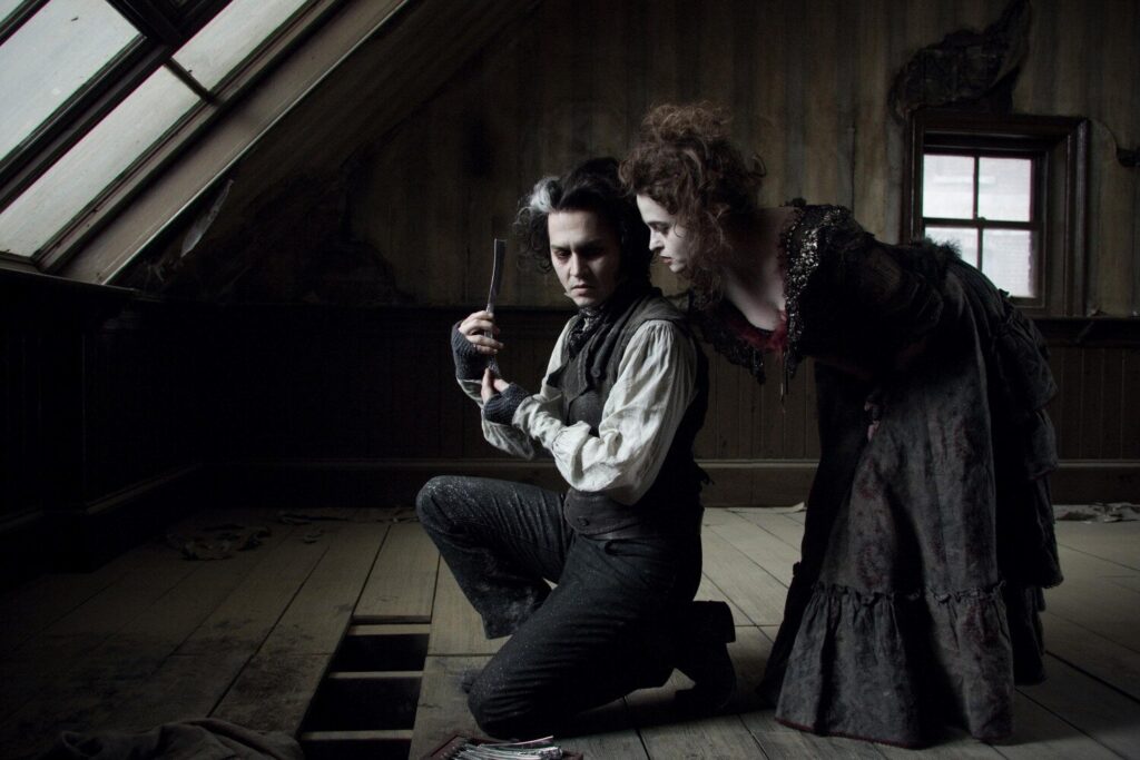 From a screenplay by John Logan, Sweeney Todd: The Demon Barber of Fleet Street is based on the stage musical of the same name by Sondheim and Wheeler, which was itself based on the 1970 play Sweeney Todd by Christopher Bond. The film follows Benjamin Barker (Johnny Depp), an English barber who also happens to be a serial killer seeking revenge on Judge Turpin (Alan Rickman), who wrongfully convicted and exiled him sixteen years before he arrived in London to steal his wife Lucy Barker (Laura Michelle Kelly). Benjamin adopts the alias “Sweeney Todd” to further his revenge and soon begins murdering his customers to process their remains as meat pies with the help of Mrs. Lovett (Helena Bonham Carter).
