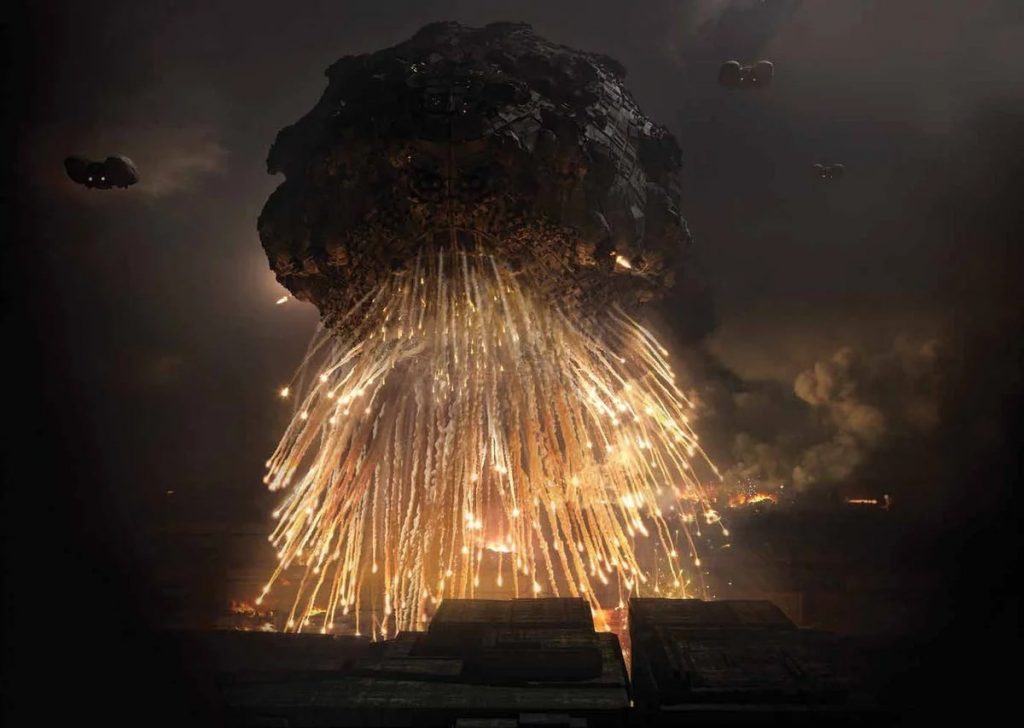 The massive firepower the Harkonnen assault ship unleashed on Arrakeen was also destruction eye candy. Everything from her missile barrage to her almost scientifically accurate laser cannon cutting through the city in its effort to shoot down Duncan’s ornithopter was just gorgeous. I daresay, that the entire battle scene looked way better than anything Star Wars came up with. Let’s hope Villenueve comes up with scenes just as gorgeous in the sequel to Dune when it debuts on October 20, 2023.