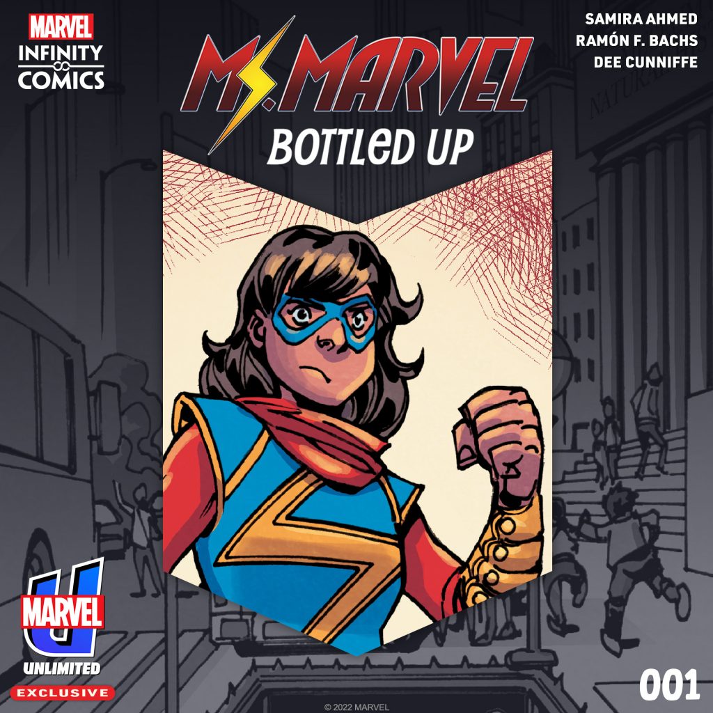 The creative team includes writer Samira Ahmed, artist Ramon Bachs, and colorist Dee Cunniffe. The MS. MARVEL: BOTTLED UP one-shot is now available on the Marvel Unlimited app in the exclusive Infinity Comic format.