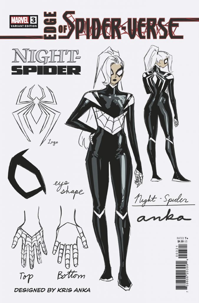 - What if Felicia Hardy became a Spider-hero? Dan Slott teams up with artist Sumeyye Kesgin to answer that question with the debut of super thief Night-Spider! Check out her sleek look, designed by artist superstar artist Kris Anka, in a special design variant cover!
