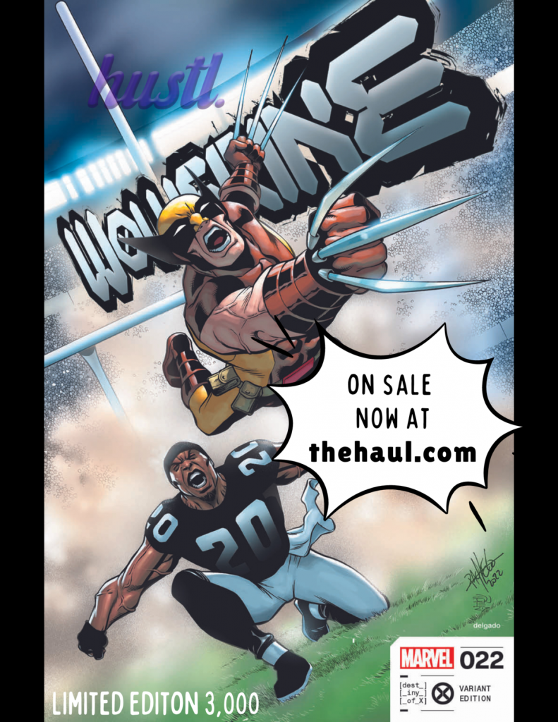 hustl. announced today that Pro Football legend Brian Dawkins and Marvel’s Wolverine, will take to the gridiron on a limited-edition comic book variant cover to celebrate the release of WOLVERINE #22. This exclusive variant is a limited edition of only 3,000 books and is available for purchase at TheHaul.com as of June 15, 2022.