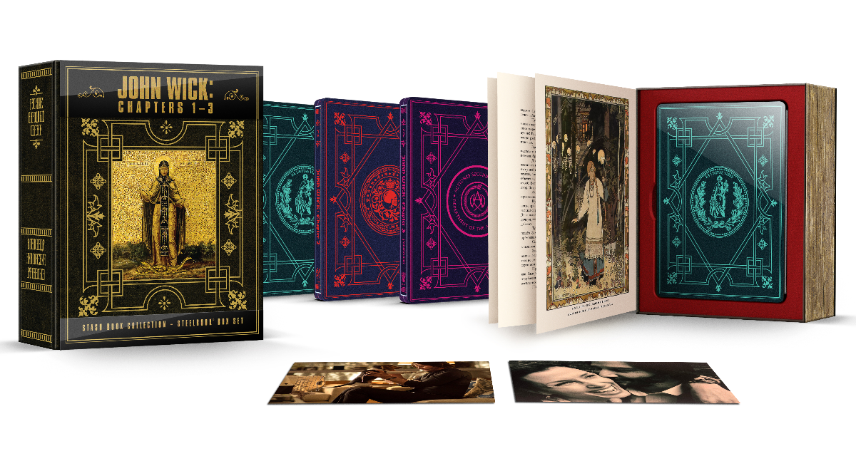 When housed in the outer box, the three SteelBooks form a replica of John’s killer “stash book” from John Wick: Chapter 3 – Parabellum. Each SteelBook features art with detailed imagery specific to the film within. This edition is BestBuy exclusive and retails for $99.99.