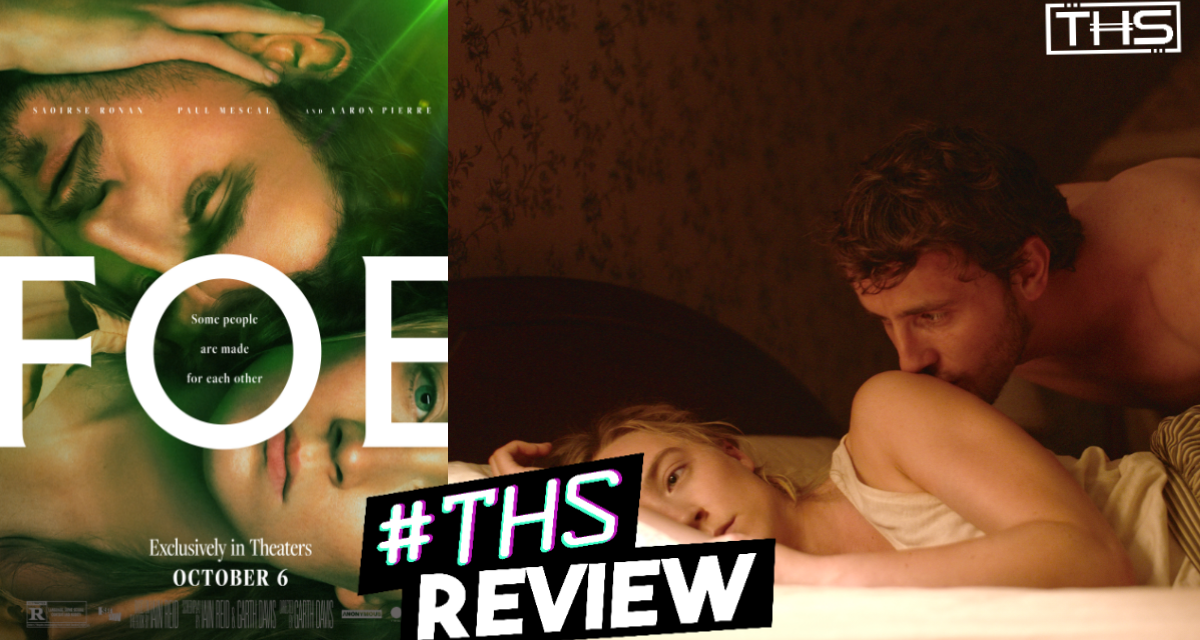 Foe takes place in 2065, in a world where Earth has been ravaged by significant climate change. The story follows a couple, Hen (Saoirse Ronan) and Junior (Paul Mescal), who live alone on a secluded bit of farmland. One day, a government employee (Aaron Pierre) shows up and says Junior is being recruited to assist in a mission to colonize space. Also, while Junior’s in space, Hen will live with what’s essentially a government-issued clone of her husband, programmed to have all of his memories. The government guy needs to stay with the couple for a while to observe Junior and run some tests to prepare him. In doing so, he begins driving a wedge in Hen and Junior’s already rocky relationship.
