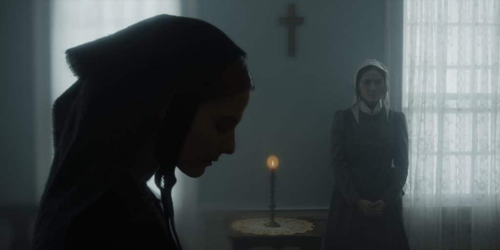 As the story jumps back in time, we witness Mary, raised in a repressively religious household, finding fleeting happiness in the arms of Eleanor (Isabelle Fuhrman, Orphan), the home’s maid. Her family, who believe they are seeing, speaking, and acting on God’s behalf, view the girls’ relationship as an abomination to be dealt with as severely as possible. The couple attempts to carry on in secret, but someone is always watching, and the wages of perceived sin threaten to become death, with the tension only heightened by the arrival of an enigmatic stranger (Rory Culkin, Lords of Chaos) and the revelation of greater forces at work.