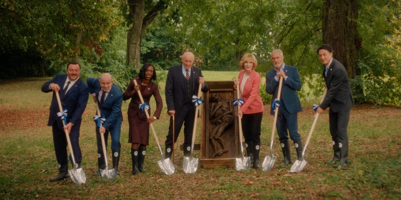 Ricocheting between comedy, apocalyptic horror, and swooning soap opera, Rumours follows the seven leaders of the world’s wealthiest democracies at the annual G7 summit, where they attempt to draft a provisional statement regarding a global crisis. With unexpected, uproarious performances from a brilliant ensemble cast, these so-called leaders become spectacles of incompetence, contending with increasingly surreal obstacles in the misty woods as night falls and they realize they are suddenly alone. A genre-hopping satire of political ineptitude, the latest film from incomparable directors Guy Maddin, Evan Johnson and Galen Johnson is a journey into the absurd heart of power and institutional failure in a slowly burning world.