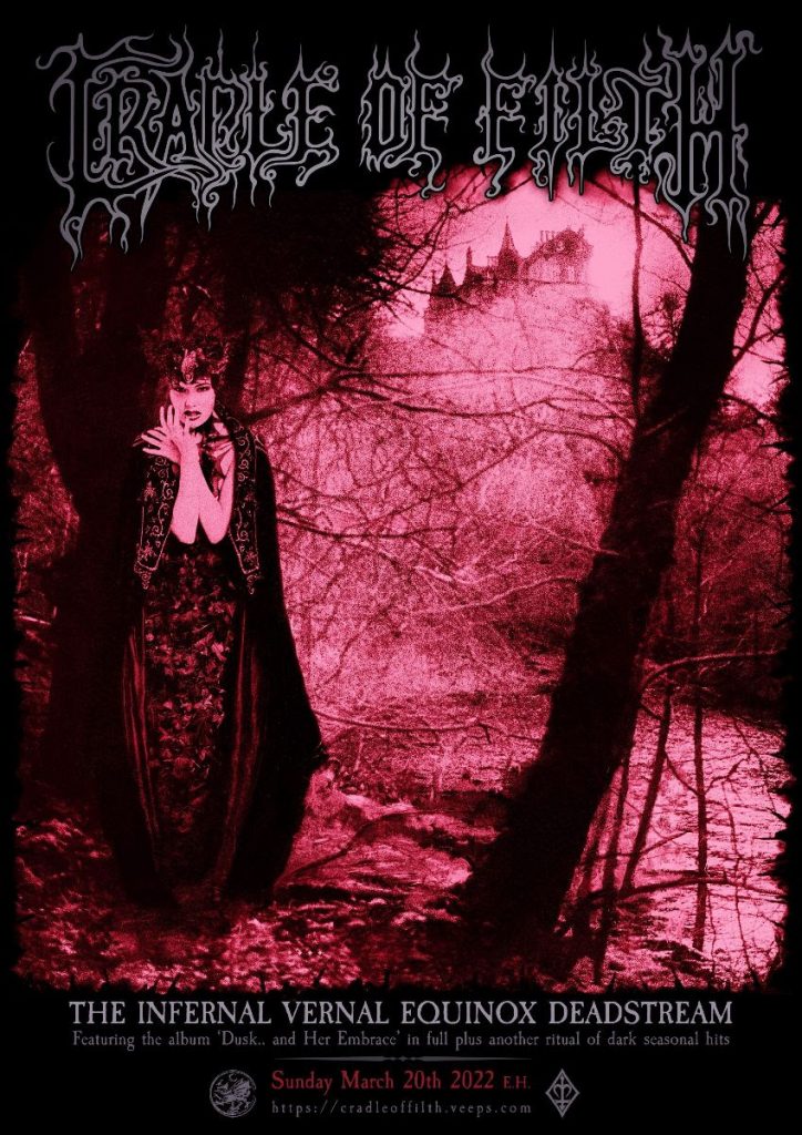 The hellacious folks at Cradle of Filth are giving a special gift to fans in March. They’re streaming a one-time show on March 20th, 2022 called The Infernal Vernal Equinox. The concert airs on the Spring Equinox, during which the band will play their 1996 studio album Dusk…and Her Embrace in full.