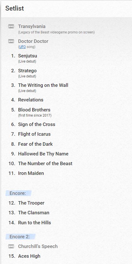 We previously thought that they’d shift around some of the songs, but we got “Blood Brothers” added to the set. As for other changes to make way for the Senjutsu material, we lost “Where Eagles Dare”, “The Evil That Men Do”, “The Wicker Man”, and “For The Greater Good Of God”. Those songs are pretty huge casualties, but making way for some of the Senjutsu songs is pretty worth it. Keeping the Blaze Bayley era tracks “Sign of the Cross” and “The Clansman” was a huge feat for the band. I can’t wait to hear this set when they bring it to North America in the Fall.