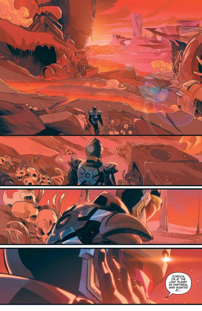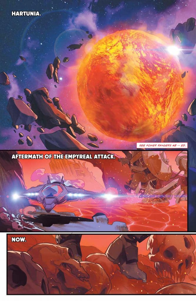 We pick up right after the world-shattering POWER RANGERS #8 with the Phantom Ranger on a desolate Hartunia with nothing in sight.