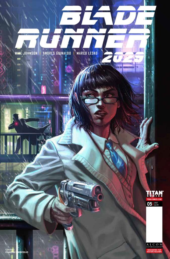 Mike Johnson serves as the writer for Blade Runner 2029 #5. Andres Guinaldo is the artist for this sci-fi cyberpunk comic book set in the Blade Runner universe, Marko Lesko is the colorist. Dani Strips, Syd Mead, Eldo Yoshimizu, and Claudia Iannicello are the artists responsible for covers A, B, C, and D respectively. And as in previous issues, Titan Comics is the publisher for this comic book series.