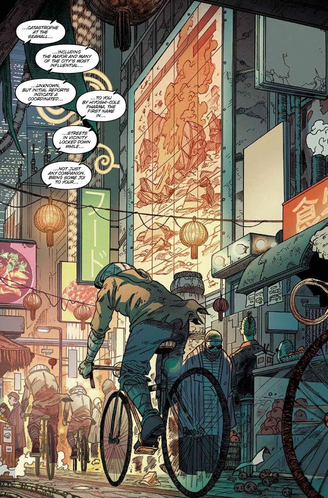 The story of Blade Runner 2029 #5 is what keeps me reading. You have all these different groups with their own agendas, and the 2 main characters who just want to survive it all and live happily ever after with each other. It definitely feels like a cyberpunk story to the max.