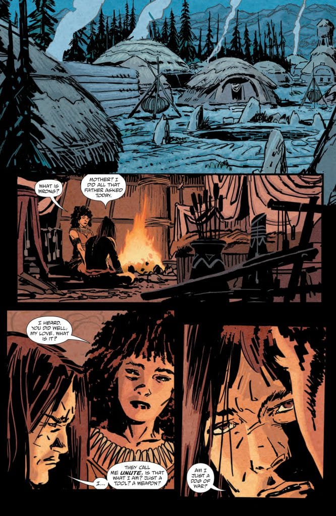 And yet, people still keep coming, trying to kill B. Which means that his father has to have B hit villages and towns that are farther and farther away. So much so that B is starting to question if this is even necessary. Seriously, he’s really getting tired of having to constantly kill lots and lots of people. Really, he’s only doing this to earn his father’s approval and love, and even that is starting not to be enough. Heck, even his father is starting to freak out after B massacred a town’s women and children on his own orders. BRZRKR, indeed.