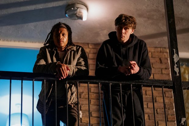What I Came By also has going for it, is a superb cast. Our main players here are George MacKay as a graffiti artist trying to fight back against the rich and the powerful, Percelle Ascott as his best friend, partner-in-crime and a soon-to-be father, his widowed mother played by Kelly MacDonald, and Paddington and Downtown Abbey’s Hugh Bonneville playing completely against type as a sadistic retired judge. These four performers all give so much depth to their characters and elevate the sometimes clunky dialogue and lapses in logic the film contains. Ascott is definitely a performer I will be keeping a close eye on in the future, as he was the only one in the cast that I was unfamiliar with. The young actor really leaves an impression here, especially in some of the final scenes of the movie.