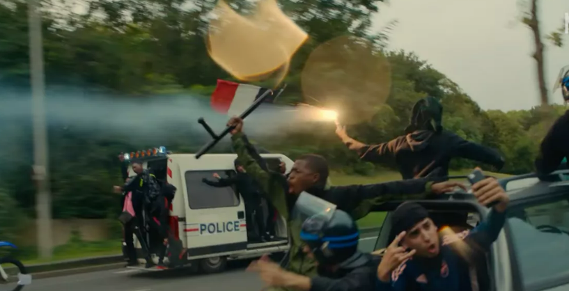 Gavras starts his film out with an eleven-minute tracking shot that immediately plunges the audience right into the throes of battle. This sequence is so breathtaking, that one will wonder how exactly the director will be able to top himself in the rest of the movie. The camera weaves in and out through hundreds of extras, as Molotov cocktails are thrown, shots are fired, fists are flying, and fireworks are whizzing by… the control Gavras has of his environment and the way he is able to stage his long shots rival that of what Sam Mendez did with 1917 and Alfonso Cuaron with Children of Men… Two movies that Athena reminds me very much of, not just for this reason.