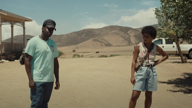 It stars Daniel Kaluuya as OJ, whose father (Keith David) recently passed away in a freak accident. They run a horse ranch that specializes in Hollywood productions for horses. Due to debts, OJ has to sell horses to their neighbor Ricky ‘Jupe’ Park (Steven Yuen), a former child star who runs a theme park now. Through all of this, old family wounds reopen when his sister, Emerald, (Keke Palmer) comes back into OJ’s life. That’s not even where the hook for Nope comes in.