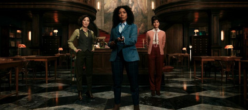 MICHELLE YEOH, ANGELA BASSETT and CARLA GUGINO in Gunpowder Milkshake. Courtesy of Netflix.
