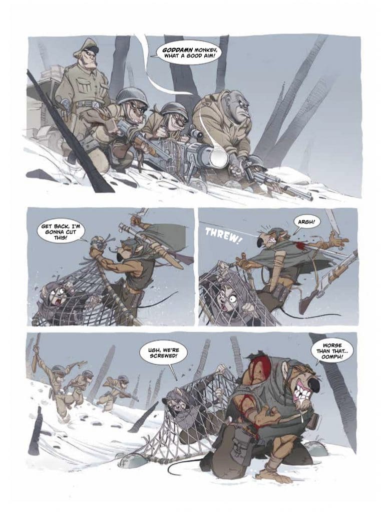 My main issue with Solo: The Survivors of Chaos 2 is the hanging plot thread involving the humans and apes. There was a short scene in which they revealed that the reason why the humans and apes want to capture live rats is to establish a rat farm to farm meat so that they don’t have to go out hunting. Or at least, not as much as they would’ve. You would think this would make them the final bosses for Solo and Lyra to face, but you’d be wrong. Yes, the human and apes’ plan does seriously affect the story and characters, but they don’t resolve it. At all. Hopefully, this plot thread will get resolved in volume 3.