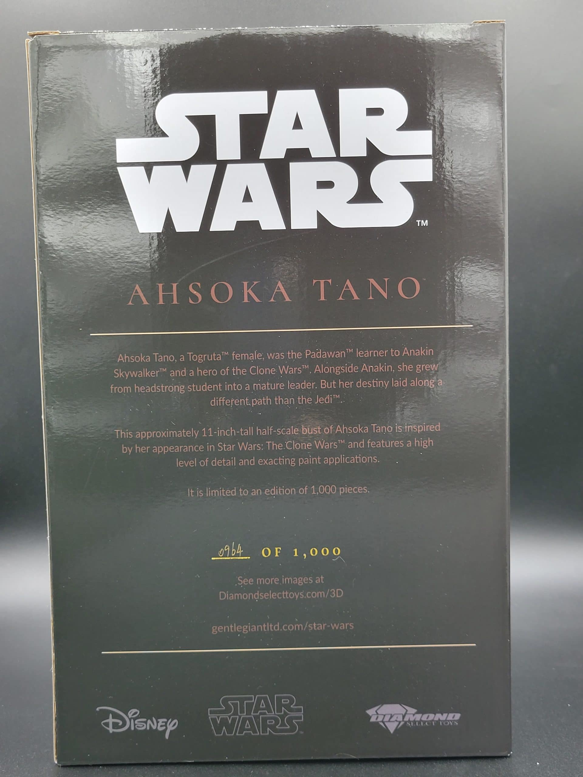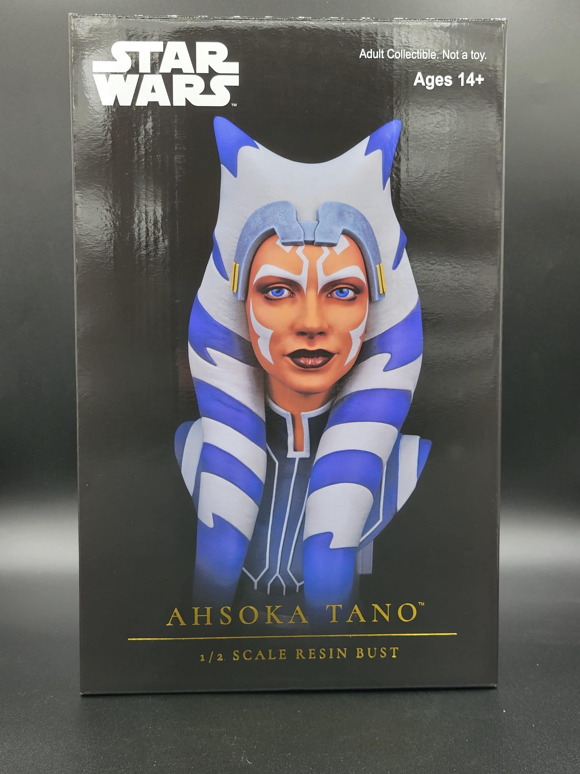 - If you are a collector that likes to keep your items boxed up or the empty boxes out, this box’s art does not only give you a great image of the Ahsoka Tano bust but also gives you a little history of her as well.
