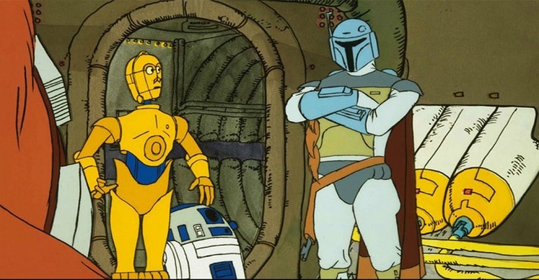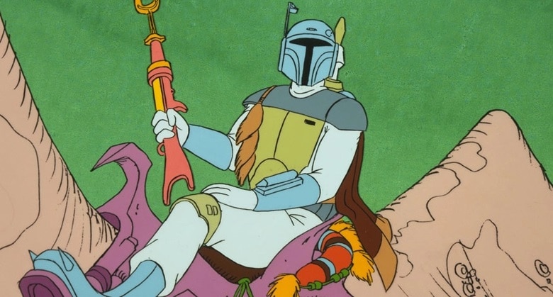 It’s hard to believe that it’s been over four decades since Fett made his way into Star Wars lore. The character has obviously morphed over time, most notably in the color of his armor. The original, animated Boba Fett bore a pale blue helmet and canary yellow chest plate, for example. Now, of course, he dons the green and red armor we’ve seen since Return of the Jedi. (It even got a paint job in advance of the upcoming series, The Book of Boba Fett.) Notwithstanding the changes, the original version still holds a (holiday) special place in our hearts.