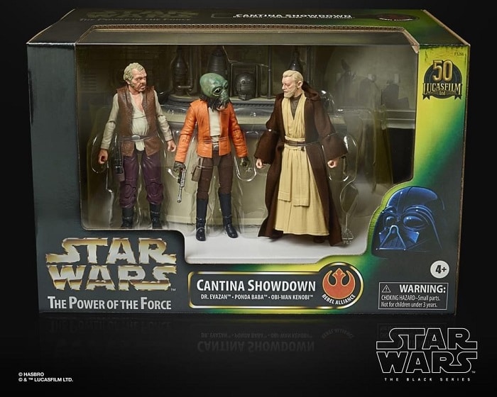 The first time we ever saw a lightsaber in action (Luke lighting it up in Ben Kenobi’s place doesn’t count) was in the cantina on Tatooine. It was there that Kenobi lopped off Ponda Boba’s arm in defense of a young Luke Skywalker. Now you can relive the scene in 6″ fashion as Hasbro Pulse announced a Cantina Showdown playset, among other Star Wars offerings! The new playset will be part of its exclusive Hasbro Pulse Con 2021 offerings. (The event will take place later this year.) There’s no price listed yet, but expect to open up the wallet. The Cantina Showdown playset includes three, 6″ Black Series figures and the cantina bar. Joining Obi-Wan Kenobi are Dr. Evazan and Ponda Boba (with arm intact).