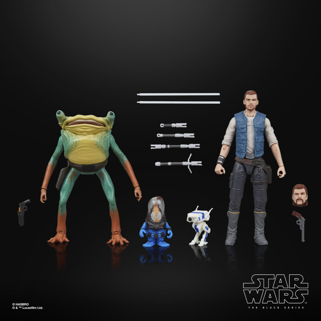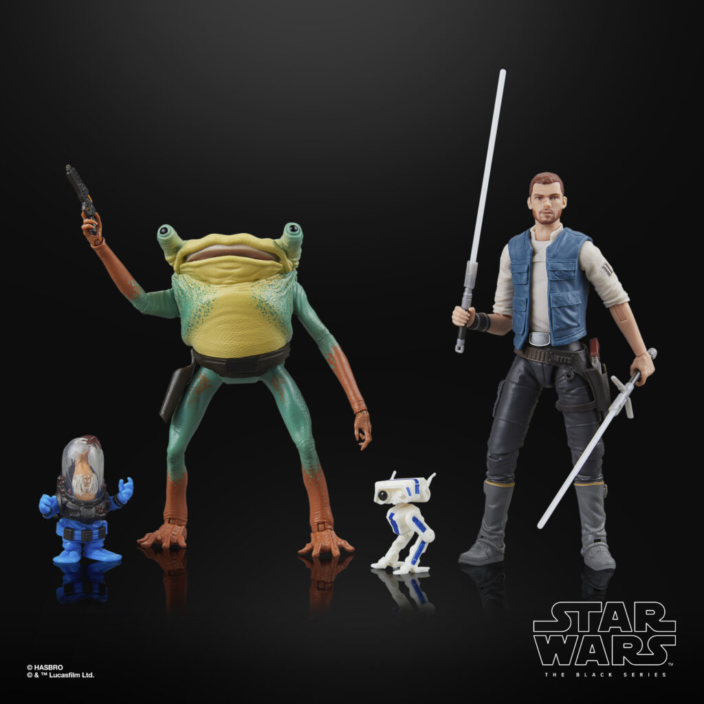 STAR WARS: THE BLACK SERIES includes 6-inch action figures, vehicles, and roleplay items from the 40-plus-year legacy of the STAR WARS Galaxy, letting fans create galactic scenes with a fidelity to STAR WARS comic books, movies, series, and more. This STAR WARS action figure multipack is detailed to look like Cal Kestis, BD-1, Turgle, and Skoova Stev from STAR WARS JEDI: SURVIVOR. Comes with 7 accessories inspired by the game. Display STAR WARS fandom on your shelf with window box packaging featuring sleek character art. Look for moreSTAR WARSGaming GreatsBlack Series figures to recreate your favorite in-game moments–or imagine your own.